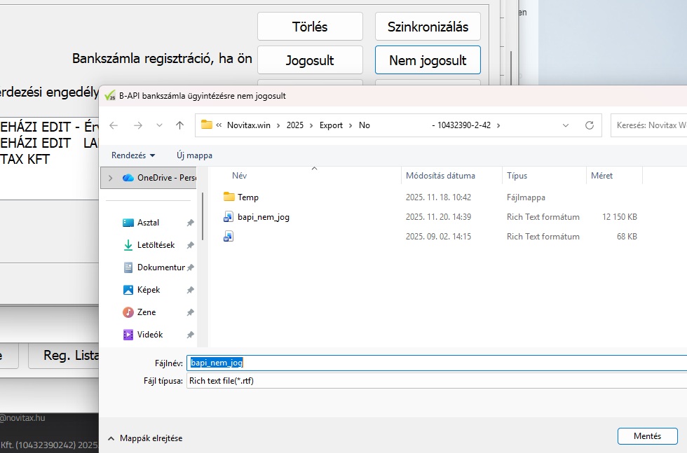 Amennyiben nem Ön a jogosult (vagyis nem rendelkezik a bank online felületére való belépéshez szükséges azonosító és jelszó adatokkal), úgy a „Nem jogosult” gombra kattintva információt kap (egy megnyíló RTF dokumentumban!) arról, hogy a bankszámla feletti jogot birtokló személynek (az Ön ügyfelének) milyen lépéseket kell megtennie, hogy a bankszámla regisztráció megtörténjen. Ezt a megnyíló dokumentumot mentse el, és küldje el a bankszámla tulajdonosnak / betekintési joggal megbízottnak.