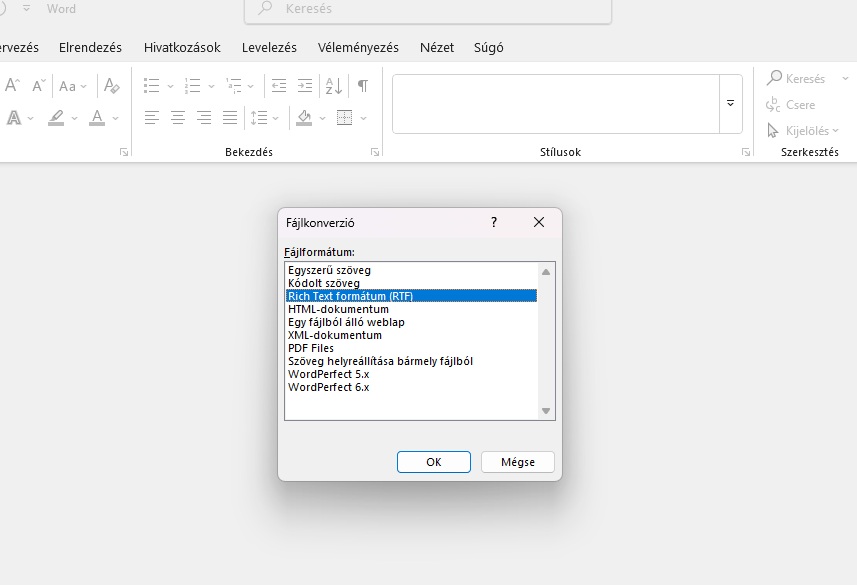 Amennyiben Nem-mel válaszolunk, az alábbi ablakon kell választanunk a lehetőségek közül:
