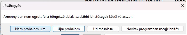 Újra próbálom: Az alapértelmezett böngészőben újra elindul a regisztrációs folyamat.