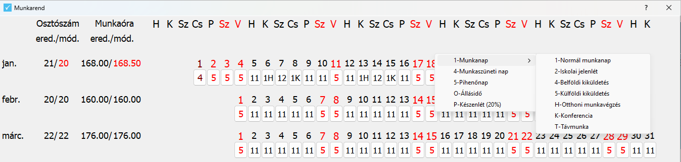 A munkanap naptípuson belül lehetőség van Konferencia típust választani (1-K).