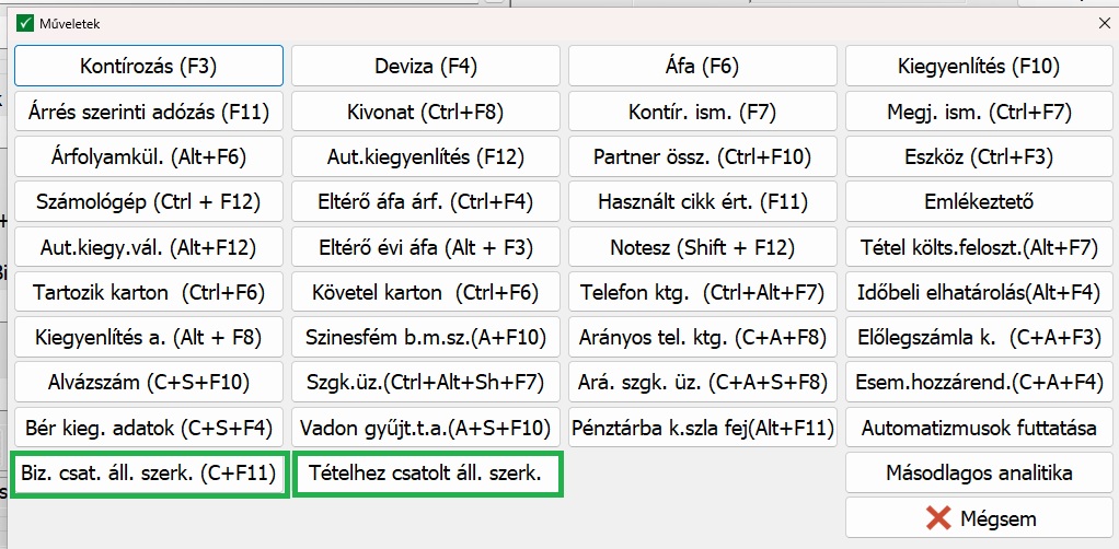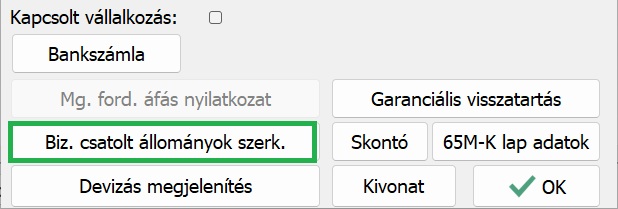 A felugró ablakban a “Biz. csatolt állományok szerk.” gombbal kezdeményezhető: