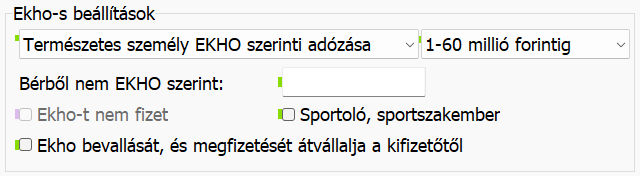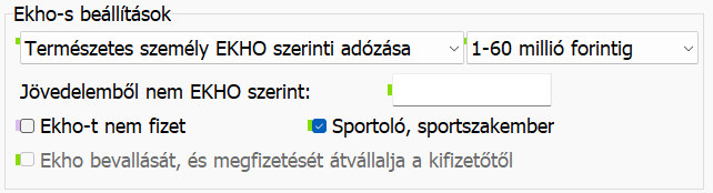 Az Ekho bevallását, és megfizetését átvállalja a kifizetőtől paraméter jelölése esetén, a bérszámfejtő program nem vonja le az ekho összegét, és nem kerül bevallásra a 08-as adatszolgáltatáson sem.