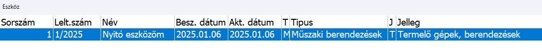 Az eszközök típusa és jellege is elérhető az eszköz áttekintő ablakban. Mind a kódjuk, mind a nevük külön elemként került ki az áttekintőbe, így különböző szűrési lehetőségük is elérhetővé vált.