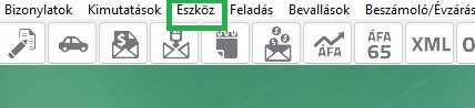 Az Eszköz almenüpont a Nyitásból a felső menüsorba került a Kimutatások és a Feladás menüpontok közé.