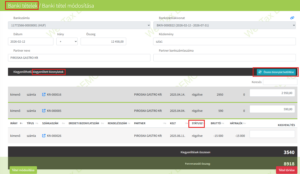 A banki tételek számlához kapcsolásakor a számlákat megjelenítő táblázatban látszik azok státusza, Kiegyenlített/kiegyenlítetlen valamint egy link segítségével megtekinthető a számla is. Lehetőség van a tétel módosítására és törlésére is .