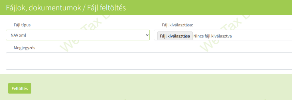 A WebTax lehetőséget ad arra, hogy NAV xml-t töltsön fel a fájlok közé, majd azt akkor, vagy később rögzítse a bejövő bizonylatokhoz.